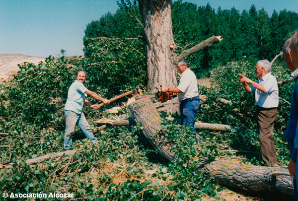 ÁLAMO: Es un árbol de crecimiento rápido. Su madera es buena para hacer palillos. Tiene las hojas verdes por la cara y blancas por el revés. Se cría en los lugares frescos. Es muy maderable, pero después, una vez está cortado en piezas, es muy fácil que éstas se empiecen a torcer. CHOPO: Es un árbol de crecimiento rápido. Alcanza una altura de hasta 10 y 15 metros. Es muy maderable. Se cría en las orillas de los arroyos y ríos, y también en los terrenos frescos. ENCINA: Es un árbol de hoja perenne. Se cría en los montes. Su madera es muy dura. Del corazón se hacen los badajos para los cencerros de las ovejas; de su tronco se hacían las piñas de las ruedas de los carros, y también los rayos de dichas ruedas. Su fruto es la bellota dulce. Sus ramas se utilizan para hacer carbón. ENEBRO: Se cría en los montes. Su hoja es perenne. Su madera es rojiza, olorosa y soporta bien la humedad. Este árbol es de copa repolluda, y hojas puntiagudas. Su fruto es la jabina, que consiste en una bolita amarga. Es muy maderable, y se usa mucho para hacer puertas. Sus ramas se utilizan para bardar las paredes de corrales, colmenares, etc. y también como pienso para las ovejas durante el invierno. PINO: Árbol de hoja perenne. Su fruto son los piñones. Es muy maderable y resinoso. De su tronco se extrae la trementina. En Alcozar hay pocos pinos, y nunca se han explotado ni para sacar madera ni resina. ROBLE: Árbol que crece en el monte. Su fruto es la bellota amarga. Cría unas "gállaras" amarillas y unos "gallarones" negros. Su madera es muy dura. Se utiliza como combustible casero y para hacer carbón.