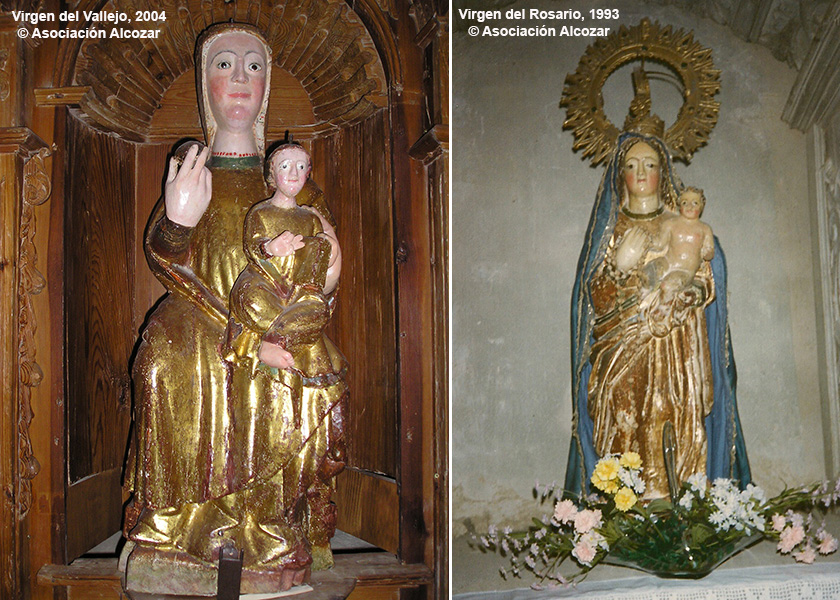 A pesar de lo que se aseguraba en los apartados de la Cofradía de la Veracruz y la del Señor: “Las únicas asociaciones de carácter religioso que han existido en Alcozar durante los últimos siglos han sido las cofradías: Cofradía de la Veracruz y Cofradía del Señor, ambas de ámbito local”, una revisión posterior de los documentos custodiados en el Archivo Histórico Diocesano de El Burgo de Osma nos ha sacado de ese error. Además de las dos cofradías mencionadas, existieron en Alcozar por lo menos otras dos: la Cofradía del Rosario y la de la Virgen del Vallejo. Según se desprende de los documentos encontrados, existió durante siglos una confusión entre ambas cofradías: la de la Virgen del Vallejo, fundada en 1526; y la del Rosario, refundada el 9 de abril de 1776 por extravío de sus libros. Si observamos la primera imagen, encontramos que mientras que en las tapas del libro de la cofradía, encuadernado con becerro, se puede leer Vallejo, en la primera página, con florida escritura, se indica Alcozar – Rosario, siguiendo el texto: