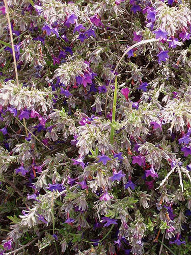 Forma parte de matorrales y pastizales secos. Crece también en parameras y laderas secas y soleadas sobre suelos calizos. Planta de tallo leñoso muy ramificado y hojas lanceoladas. Flores de color violáceo.