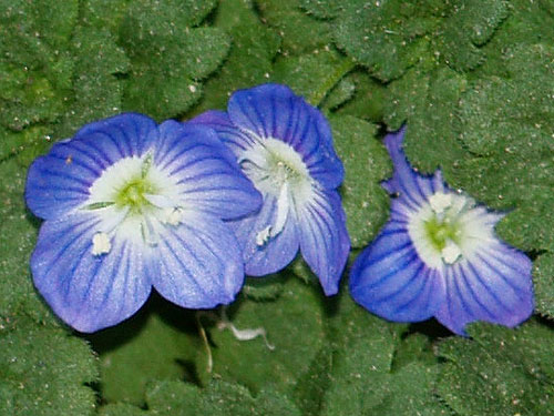 Hierba anual. Tallos generalmente decumbentes y ramificados. Hojas de redondeadas a oblongas, crenado-dentadas. Corola de color azul con venas mas oscuras y garganta blanca. Semillas amarillentas en cápsula. Crece en cultivos, barbechos, pastizales y bordes de camino con un poco de humedad.