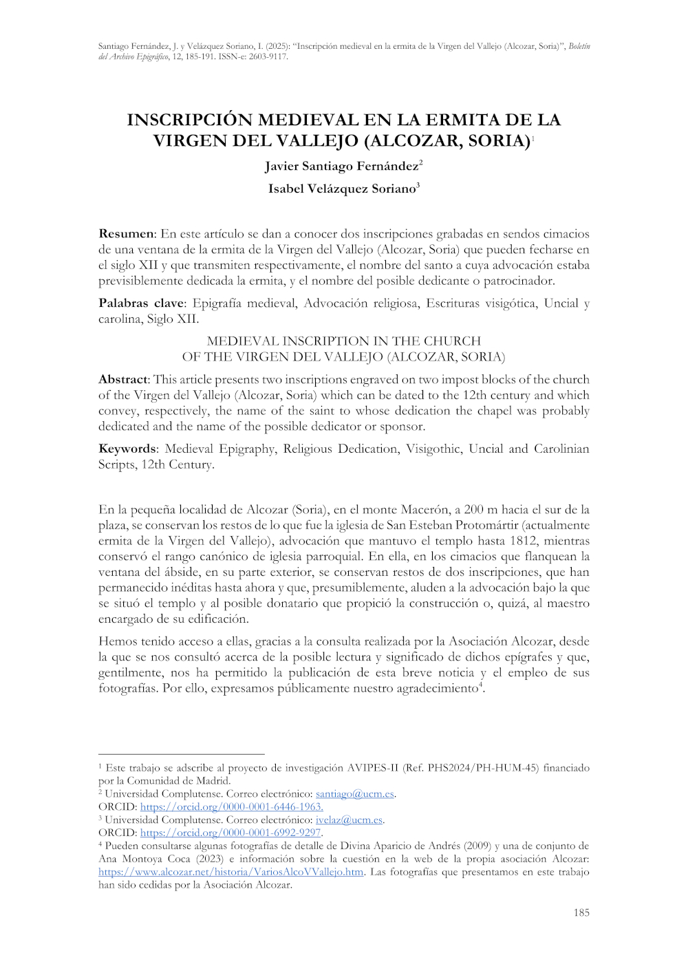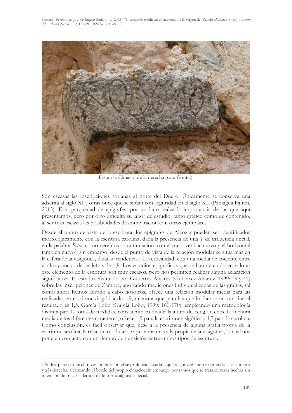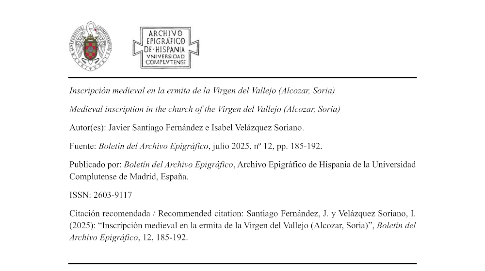 Ermita Virgen del Vallejo. Inscripción en cimacios de la ventana del ábside.
